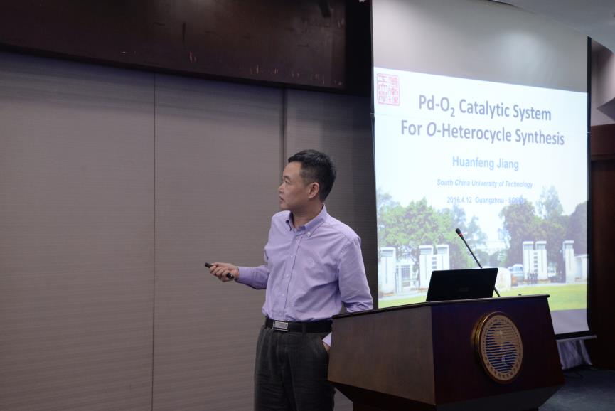 报告会由张长生主持。Hendrik Luesch教授作Natural Products from Marine Cyanobacteria as Starting Points for Drug Discovery and Development报告,主要介绍了他的课题组在抗癌药和其他疾病的药物开发方面的研究成果,从海洋天然产物化学、功能基因组学、高通量活性筛选方面详细介绍了非核糖体肽类化合物Dolastatin、Largazole等化合物的药用开发价值。 叶涛教授作Total synthesis of biologically active macrocyclic natural products报告,主要介绍了他的课题组在大环内酯、大环内酰胺类化合物的全合成工作;通过对Callyspongiolide的全合成,得到了抗癌效果远远优于天然产物的新化合物。江焕峰教授作Pd/O2 Catalytic System for O-Heterocycle Synthesis报告,详细介绍了他的课题组近年来在绿色化学方面的进展,使用钯-氧气催化芳基炔酸酯和芳基烯烃形成呋喃环类化合物的方法学研究和催化机制。