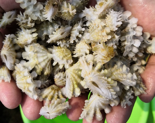 培育的番红砗磲、长砗磲、无鳞砗磲和鳞砗磲平均壳长分别为1.45毫米、1.22毫米、0.95毫米、0.78毫米,共106.2万个。熟化了一套循环水规模化大规格幼贝培育技术,幼贝存活率可达90%,中间培育周期缩短,共培育大规格幼贝60万余个。在三亚蜈支洲岛和鹿回头珊瑚礁保护区,构建了砗磲苗圃,共移植大规格砗磲苗种8000多个,区内砗磲丰度提高80%以上,极大的恢复了南海砗磲种群,促进了珊瑚礁健康良好发展。