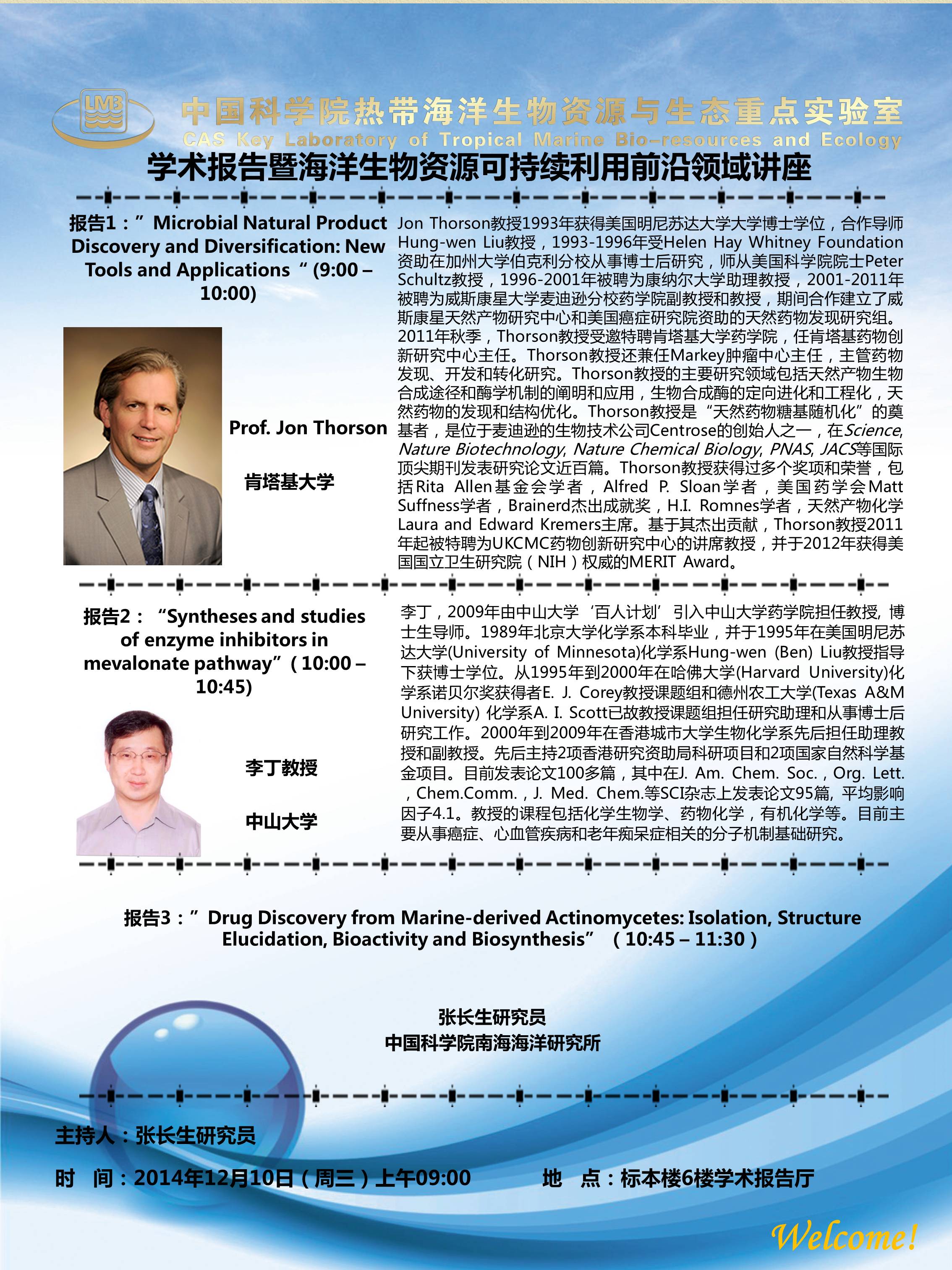 由张长生研究员邀请,美国肯塔基大学Jon Thorson教授、中山大学李丁教授近日将访问实验室并作学术报告,欢迎大家参加!