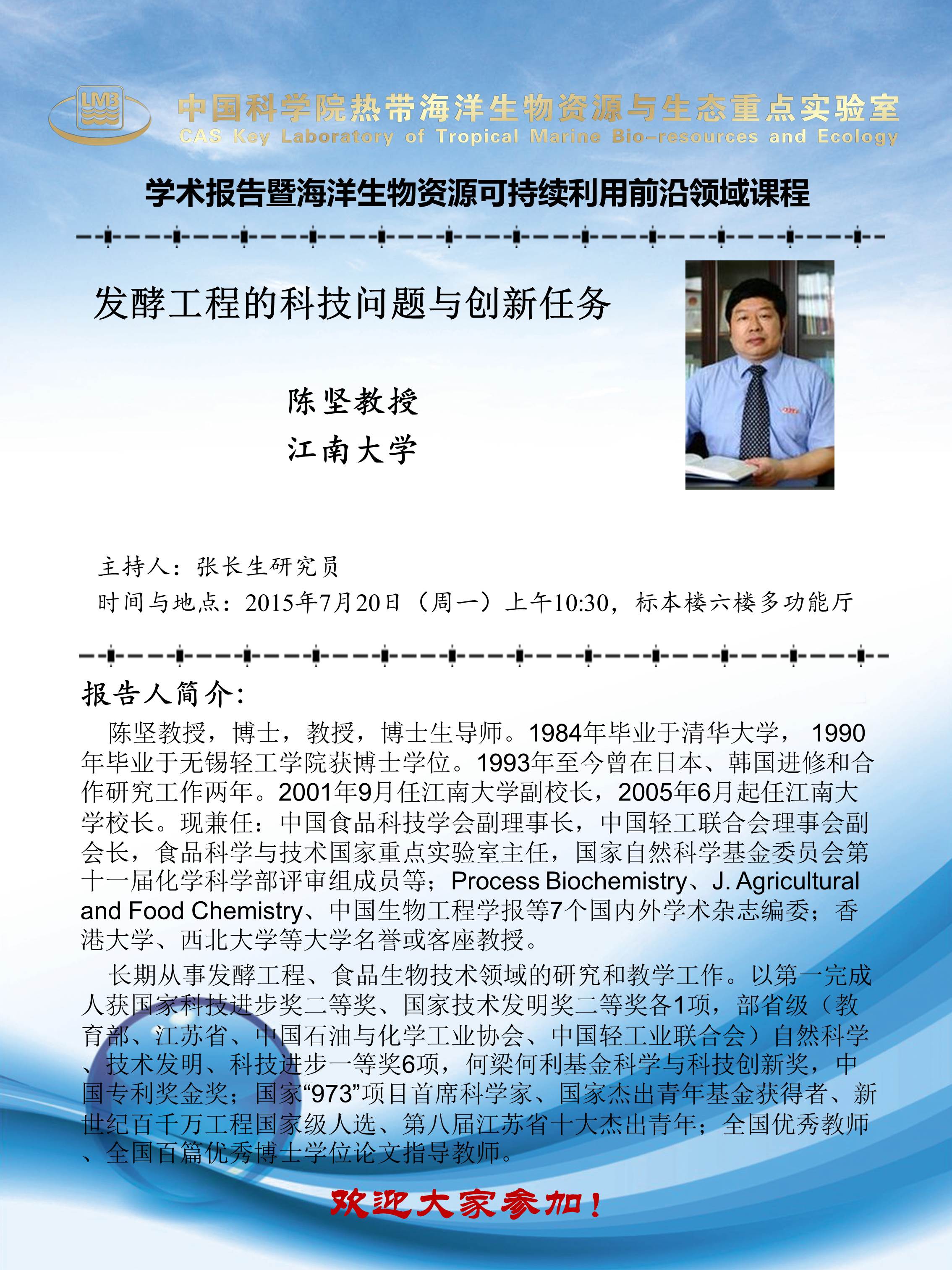 【LMB学术报告通知】7月20日_2015-09_陈坚教授_发酵工程的科技问题与创新任务