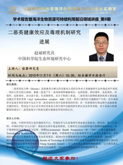 【LMB学术报告通知】11月7日_2015-19_二恶英健康效应及毒理机制研究进展