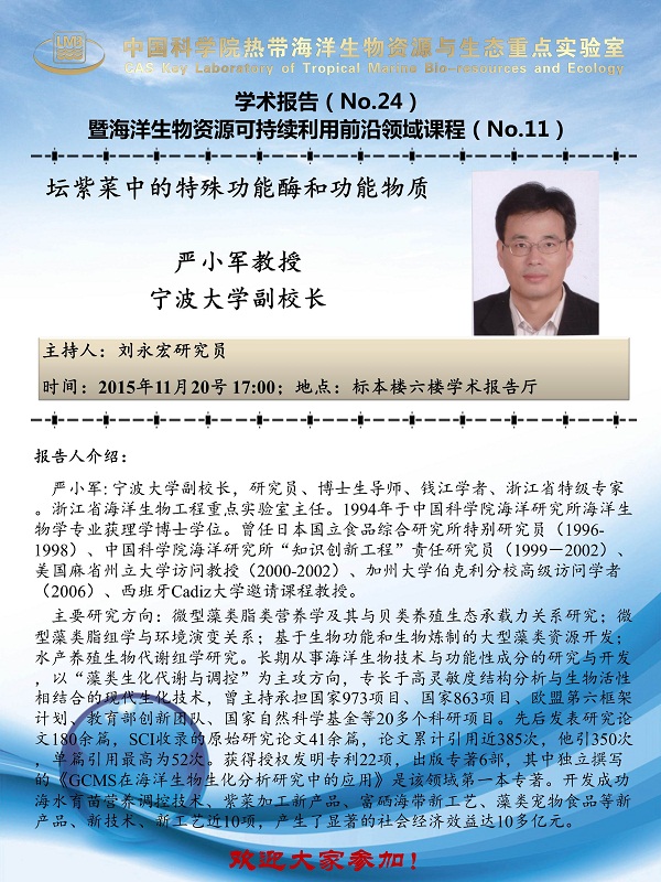 【LMB学术报告通知】11月20日_2015-24_坛紫菜中的特殊功能酶和功能物质