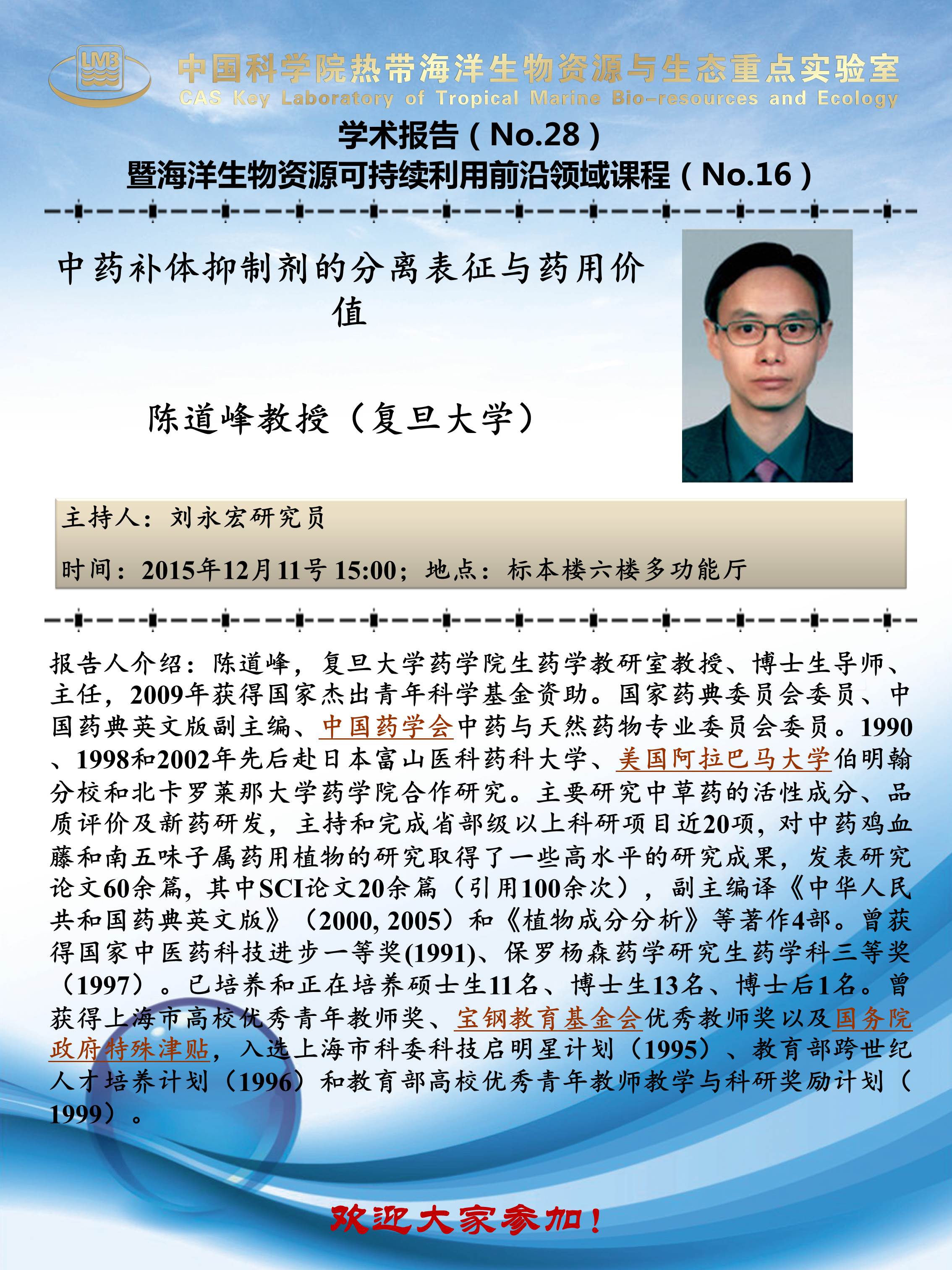 【LMB学术报告通知】12月11日_2015-28_中药补体抑制剂的分离表征与药用价值