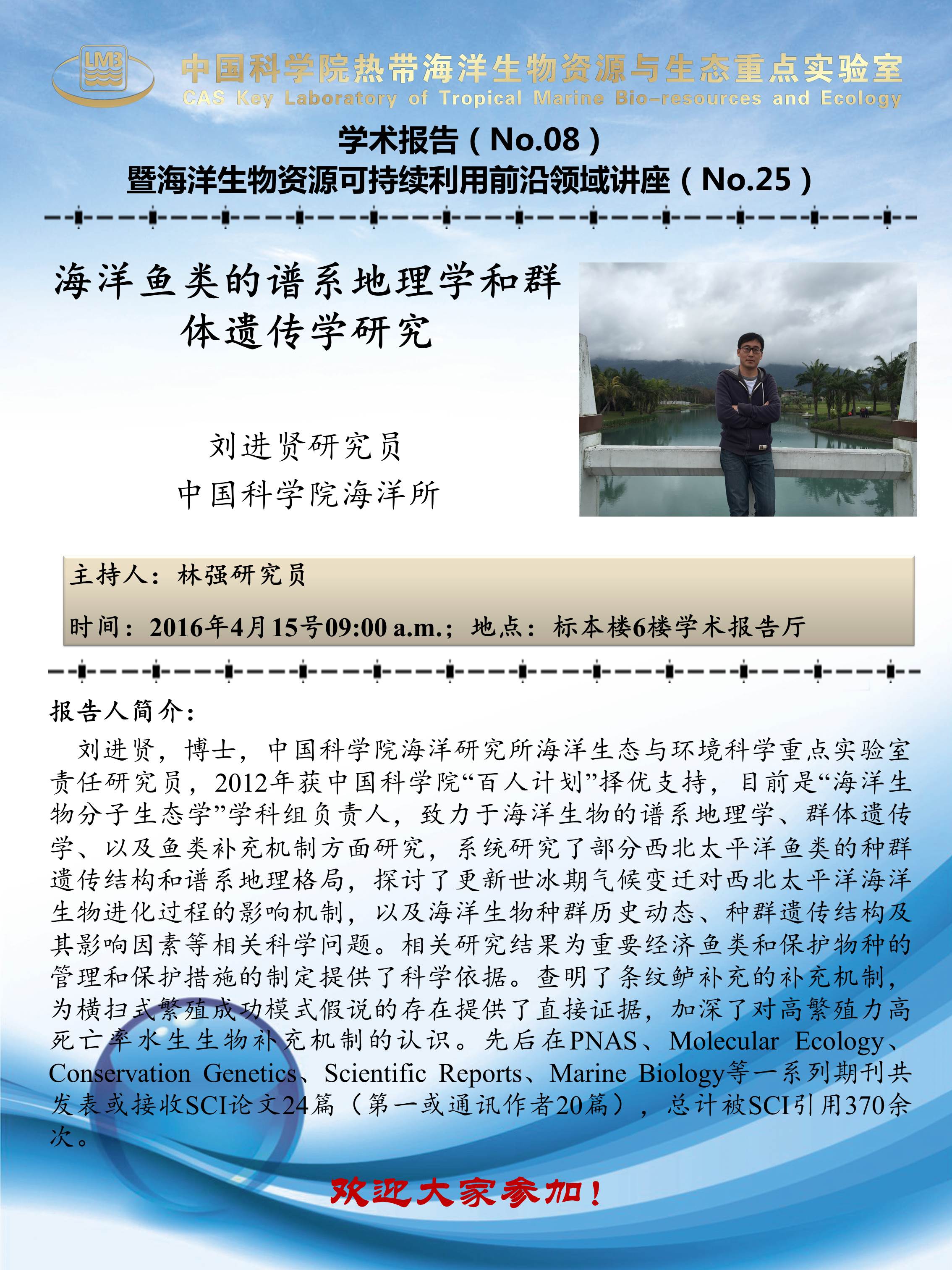 【LMB学术报告】4月15日_2016-08_海洋鱼类的谱系地理学和群体遗传学研究