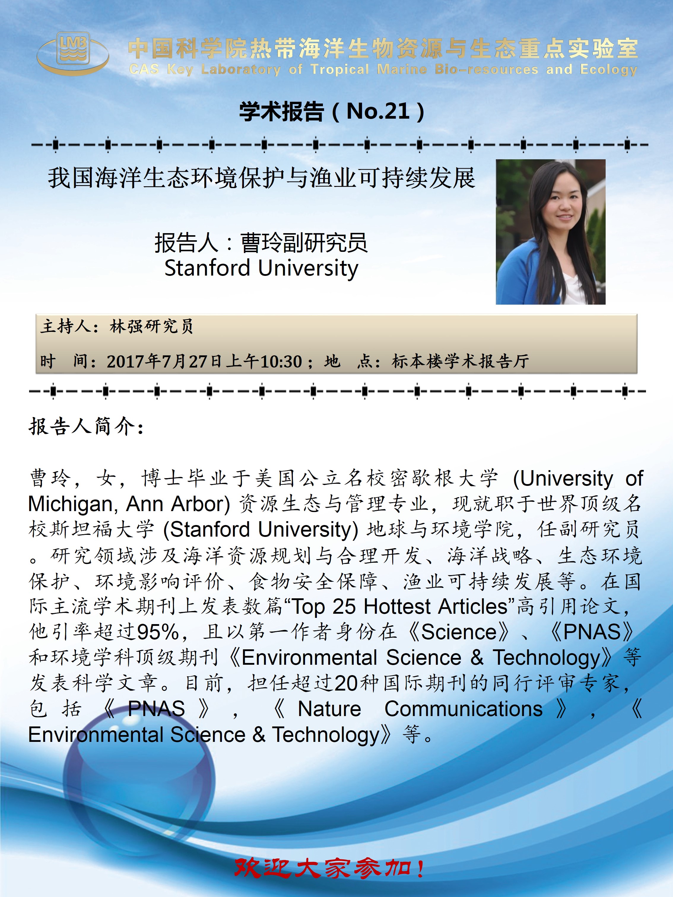 【LMB学术报告】7月27日_2017-21_我国海洋生态环境保护与渔业可持续发展