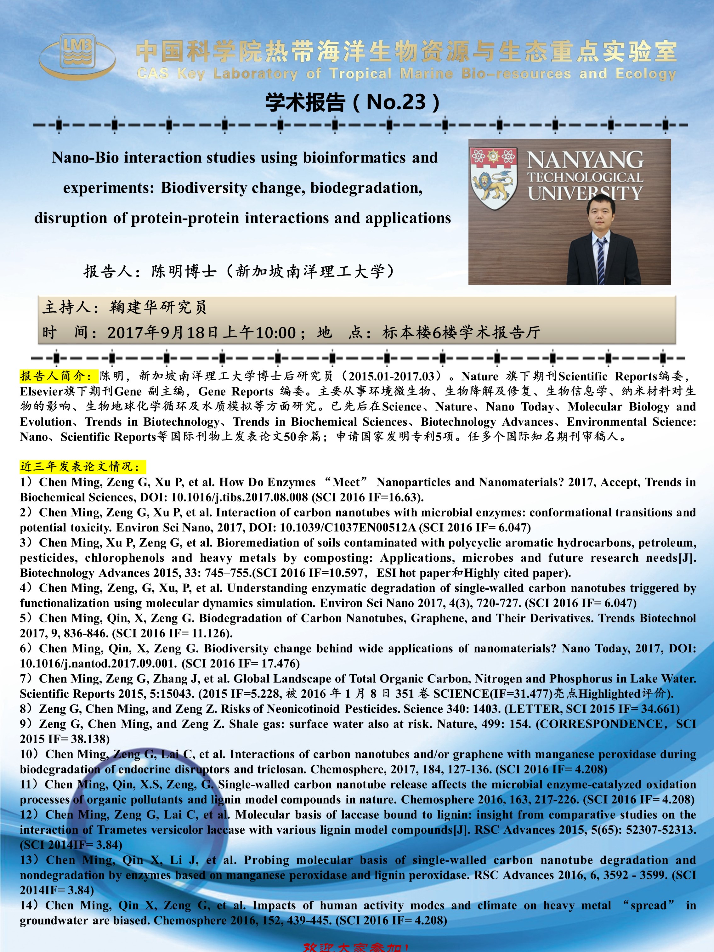 【LMB学术报告】9月18日_2017-23_Nono-Bio interaction studies using bioinformatics and experment: Biodiversity change, bidegradation, disruption of protein-protein interactions and applications
